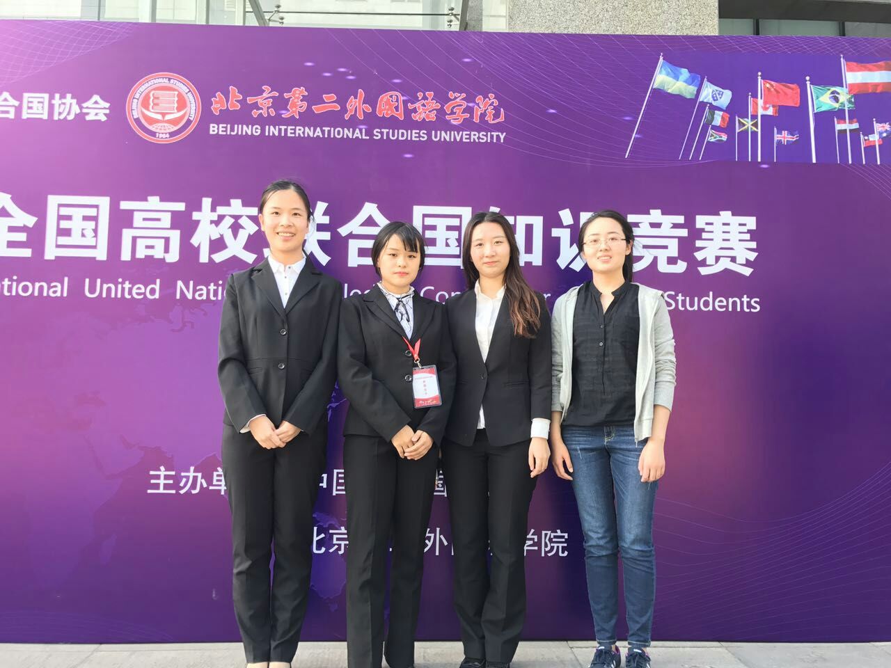 5月6日,首届全国高校联合国知识竞赛在北京第二外国语学院举行。AC米兰官网14级本科生吴越、15级本科生李明阳和牟昕彤三名同学代表AC米兰中文官方网站参赛。与中国人民大学、浙江大学、外交学院、AC米兰中文官方网站、北京语言大学等来自全国各地的17支代表队同台竞技,经过初赛和复赛的紧张争夺,最终荣获二等奖,李明阳同学荣获最佳风采奖。