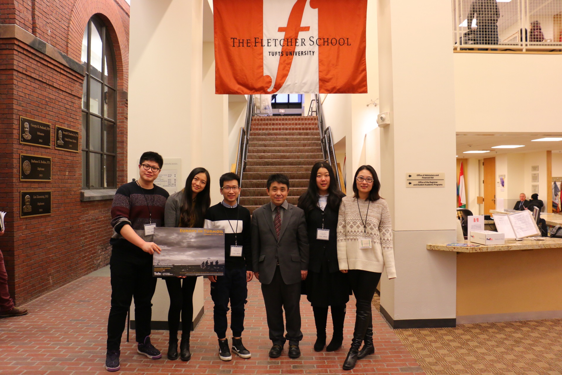 论坛在2月17日至2月21日之间举行,塔夫茨主办方共邀请了来自十四个国家的二十余个代表团,进行了主题为“欧洲的未来”(The Future of Europe)的系列讨论。第一天,主办方为使来自各个国家的代表们熟识大家并了解波士顿城市全貌,特意设计了寻宝游戏,将每个国家的代表们分散到不同的组,用一天的时间在波士顿“寻宝”,实地了解当地的历史和文化,各国学生代表们也因此互相熟悉起来。第二天开始,论坛正式开幕,以不同的讲座、小组讨论的形式分析了欧洲的经济、政治、环境、军事未来,以及欧洲所面临的身份认同、难民危机、欧洲对外贸易、欧洲在世界的地位、英国退欧公投前景等议题,各国代表互动热烈,收获颇丰。在2月19日,我同北外的另两名学生代表一起,在二十余个代表团面前作了关于中欧环境合作未来的英文报告,并同多国代表就这一议题进行了讨论,取得了较好的反响。