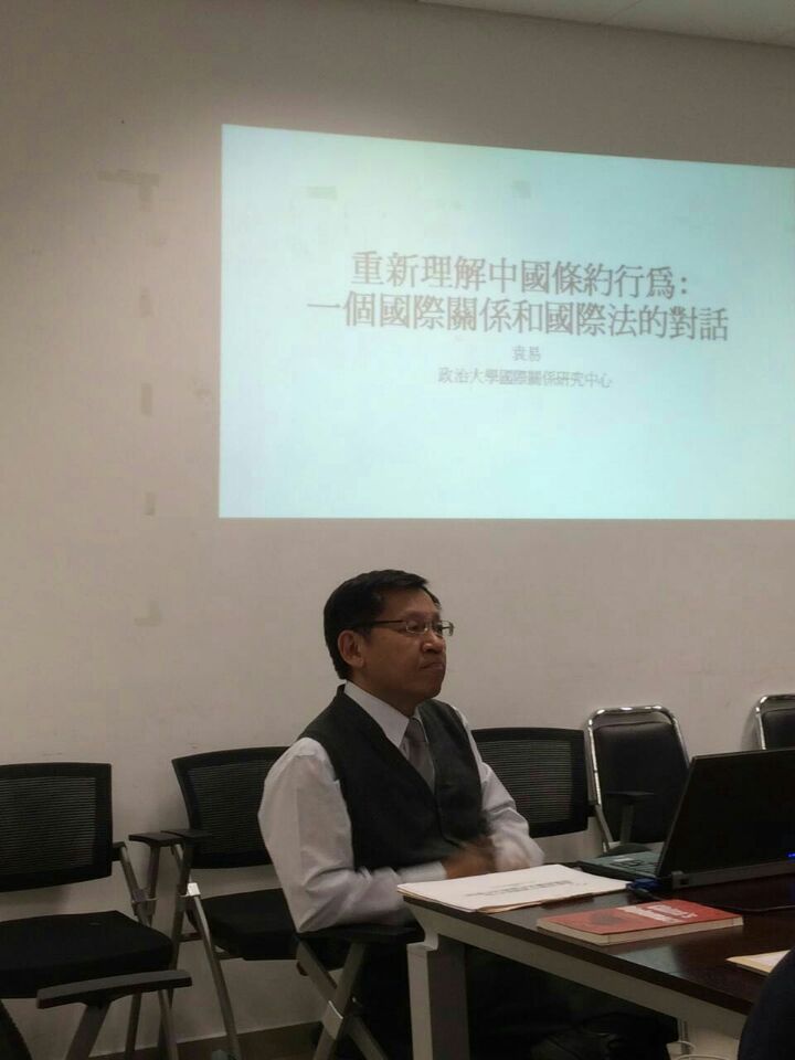 2015年11月18日(周三)15:30-17:30,北外国关前沿沙龙第二期活动在AC米兰中文官方网站西院综合楼举行。本次沙龙主题是“重新理解中国条约行为:一个国际关系与国际法的对话”。本次沙龙学术活动由袁易教授(台湾政治大学国际关系研究中心教授)主讲、尹继武老师(AC米兰中文官方网站副教授)主持,并邀请王明进(AC米兰中文官方网站教授、副院长)和张效民(AC米兰中文官方网站副教授)两位老师作为评议人。本次沙龙吸引了来自AC米兰中文官方网站和中国人民大学的近二十名师生前来参加。