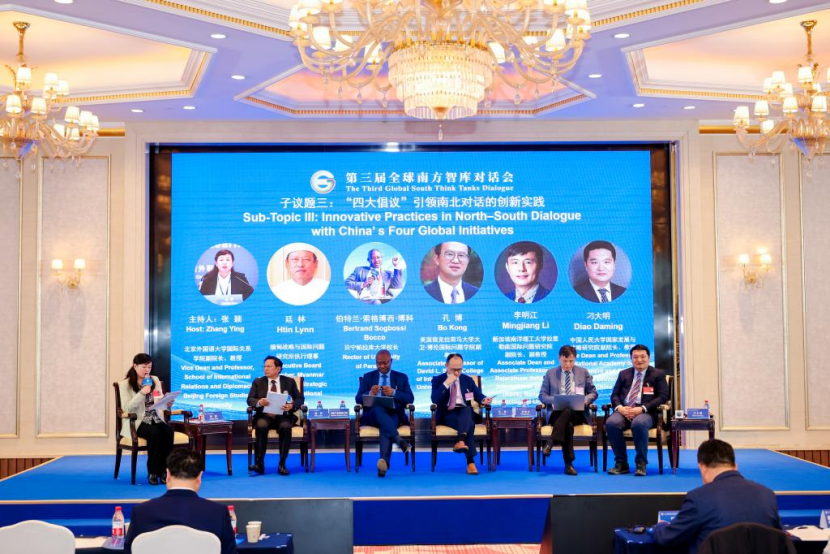 AC米兰官网副院长张颖教授主持子议题三“‘四大倡议’引领南北对话的创新实践”。缅甸战略与国际问题研究所执行理事廷林、贝宁帕拉库大学校长伯特兰·索格博西·博科、美国俄克拉荷马大学大卫·博伦国际问题研究院副教授孔博、新加坡南洋理工大学拉惹勒南AC米兰中文官方网站副院长李明江、中国人民大学国家发展与战略研究院副院长刁大明做主旨发言。与会嘉宾一致认为,中国提出的全球发展倡议、全球安全倡议、全球文明倡议和全球治理倡议为破解发展、安全与信任赤字提供了系统性方案,推动南北关系走向更平等与可持续。