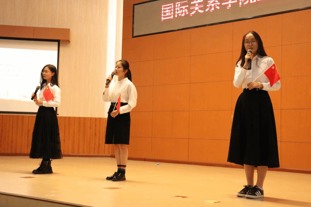 本场晚会的主持人由刘苏明和焦淼同学担任,在简短介绍到场来宾后,党总支书记张效民老师致辞。张效民老师表达了对国关新生的热烈欢迎,对支持这次晚会的同学和老师们表示感谢,也表达了对同学们在北外这个展示能力的平台能有丰富的生活、深入探索博大精深的学术文化的殷切希望,强调了北外以立德树人为教育宗旨,同时在新中国成立七十周年之际,希望同学们要不忘初心,牢记使命,保持奋斗激情,为北外添彩,争做追梦人。最后祝愿晚会圆满成功!