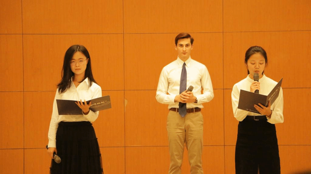 接下来的第二部分名为“异国”,语言是人类文化的载体,是珍贵的无形遗产。在这一部分,1903班王瀛彩同学首先为我们带来《悲惨世界》音乐剧中《I dreamed a dream》一曲,她将芳汀的哀悼表现得绘声绘色。第二个节目是由1907班白文丹同学带来的歌曲《what are words》。随后的表演,在1907班程怡伦的轻灵舞蹈下,1907班周子琳和郭子瑜同学演唱《city of stars》,为我们带来了一场视听盛宴。这一部分的最后由1905班同学和留学生带来《Stopping by woods on a snowy evening》诗歌朗诵,将诗中忧伤里蕴含的对生命的沉思表现得淋漓尽致。