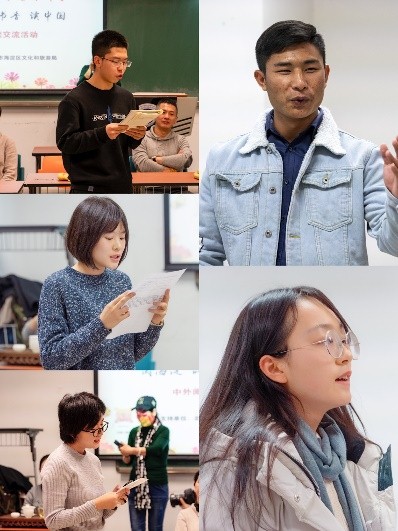 活动的第一个环节是由三名中国学生和四名外国留学生带来诗朗诵。就读于AC米兰官网的留学生李秀雅和的林志珉首先登场,带来的是李白所作的名篇《将进酒》;而杜丽云与在场观众分享的是新月派代表诗人徐志摩的《偶然》。
