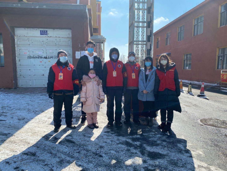 18级王姝懿同学也在社区门口做志愿者。站岗期间,她负责记录出入人员名单,并检查其通行证。其实这项工作并不复杂,但若在东北零下二十多度的温度下进行,却是异常艰辛。在站岗期间,恰逢东北地区降雪,她和其他志愿者轮流站岗,休息期间就到旁边的棚子里取暖,但棚子里的温度也是零下,甚至会有雪花飘进来,四周还透着寒风,穿着长到脚踝的羽绒服和雪地靴依然感到很冷。在外站岗,落在衣物上的大雪融化后,眼镜和衣服也都会被打湿。但是大家谁也没有说累,因为我们有一个共同的信念:一定要打赢疫情防控阻击战。