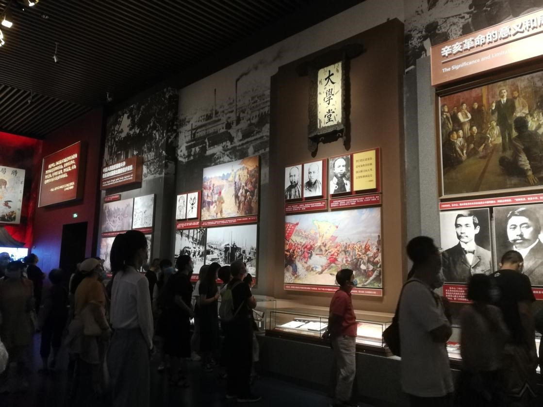 在参观过程中,大家放慢脚步,时不时在展品前驻足仔细观看,交流感触与心得。