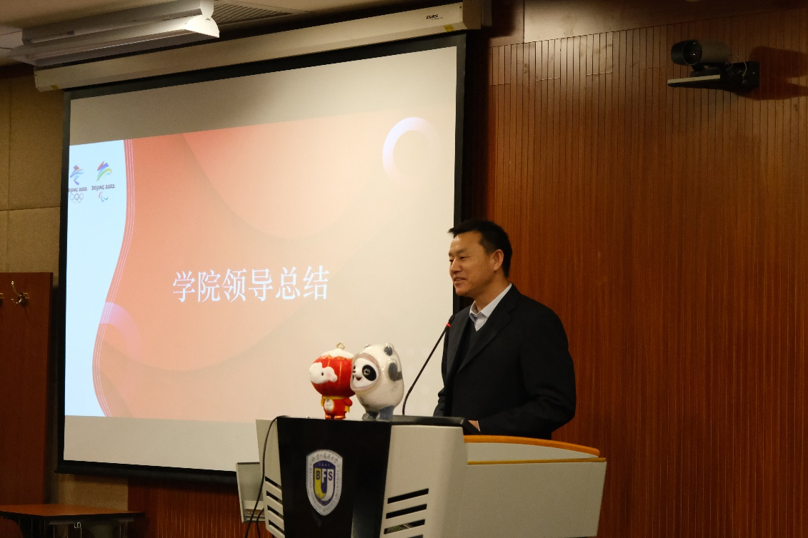 随后,谢韬院长代表学院致辞。谢韬院长首先向志愿者们表示了鼓励和肯定,希望志愿者们能够在冬奥会中积极奉献,勇于担当,在完成好志愿服务工作的同时遵守疫情防控要求,做好自我保护,并表示学院随时为大家提供帮助。