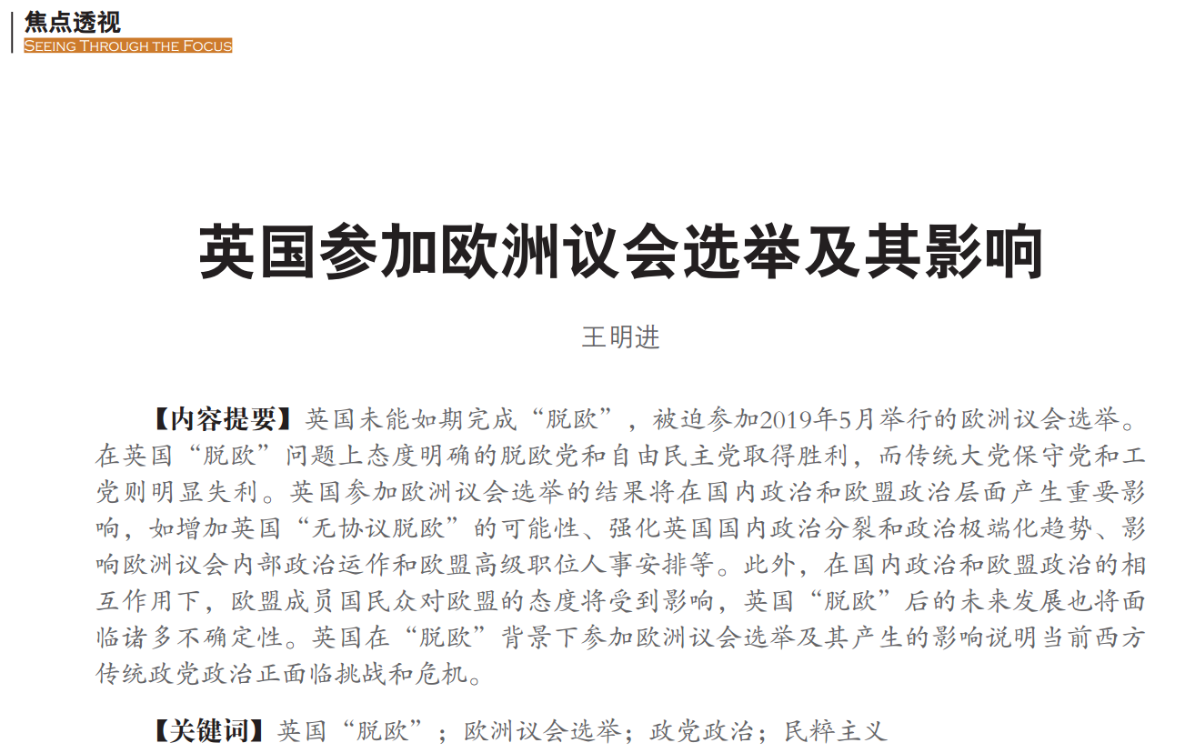 王明进:《英国参加欧洲议会选举及其影响》