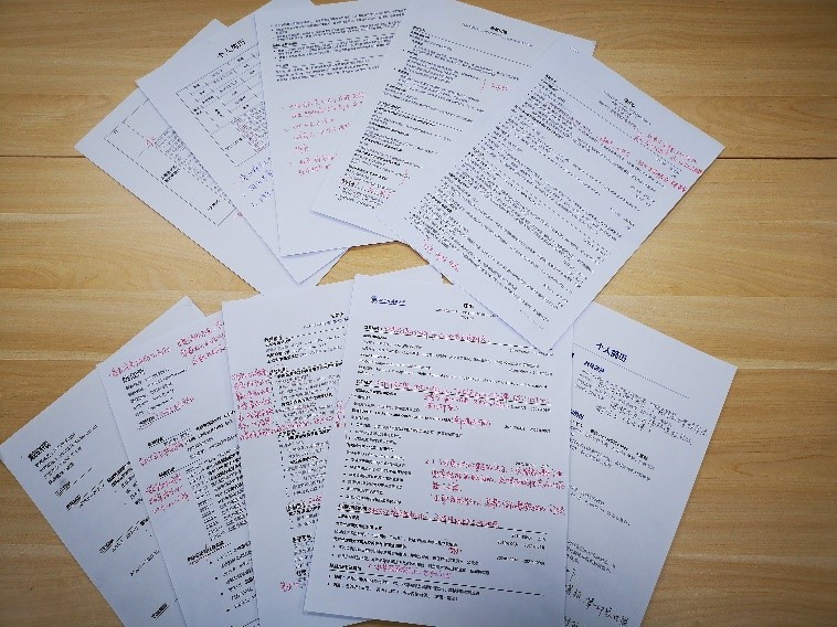 从简历整体上呈现的内容和形式来看,同学们都有着较为丰富的学习和实践经历,对简历的撰写和设计也有着初步的了解。但简历中也存在着一些共同的问题:比如简历模板不规范、板块界定不清晰、出现错别字以及内容上逻辑不通和详略失当等。评改结束之后,赵泽军和吴浩妮两位同学对批注后的简历进行了汇总与整理,并对同学们进行了“一对一”反馈。
