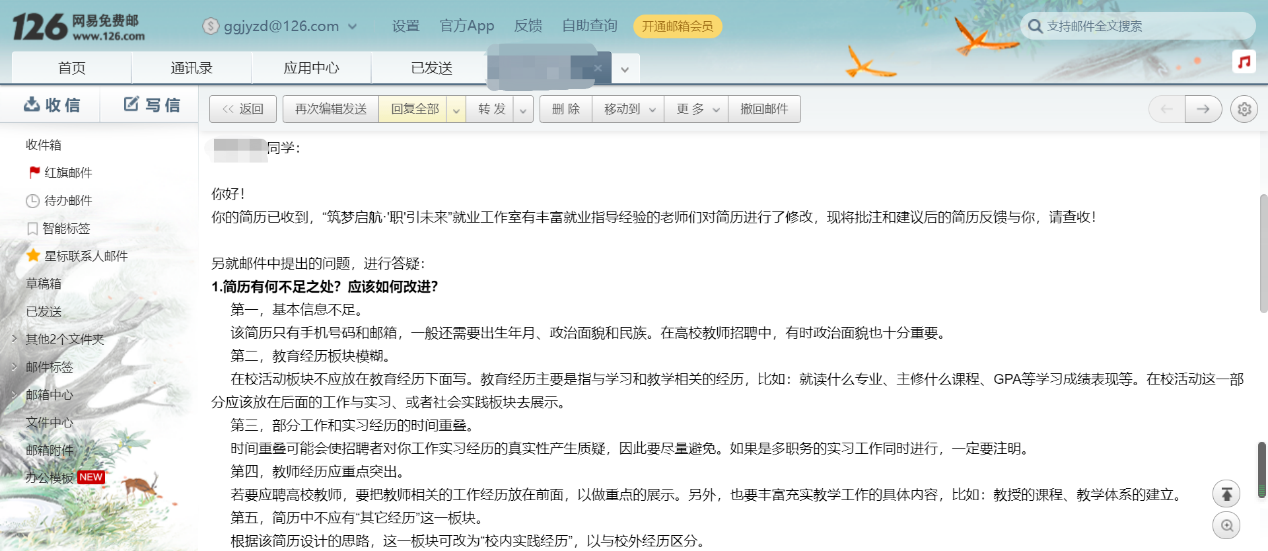 自筑梦启航·“职”引未来就业工作室推出第一期活动“简历修改工作坊”的通知以来,工作室陆续收到了来自AC米兰中文官方网站、欧洲语言文化学院等各学院同学的简历。在邮件往来之中,我们感受到了同学们对简历指导的强烈需求,以及对就业工作室满满的信任。