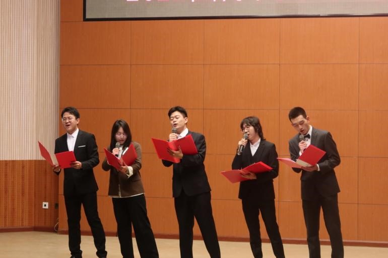 在乐队精彩的演出之后,主持人熊睿,梁予希,李陈虎,信沫含宣布迎新晚会正式开始。