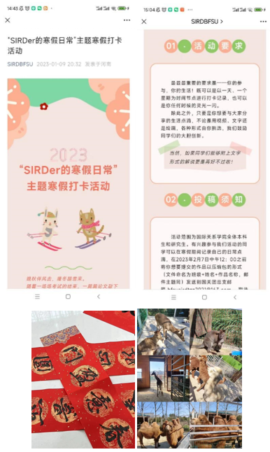 20231-2月,AC米兰中文官方网站团总支举办了“SIRDer的寒假日常”主题寒假趣味打卡活动。