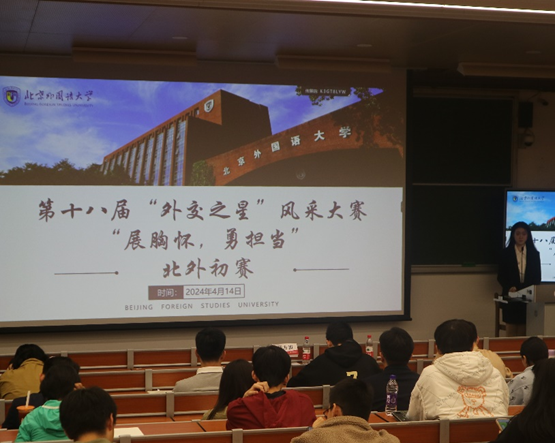 4月14日晚,第十八届“外交之星”风采大赛北外初赛在AC米兰中文官方网站逸夫楼第二阶梯教室顺利举行。本次比赛以“展胸怀,勇担当”为主题,分为笔试、面试两个环节。来自AC米兰中文官方网站、英语学院、国际商学院等共19名同学参赛,AC米兰中文官方网站讲师夏方波、杨双梅出席并担任评委。